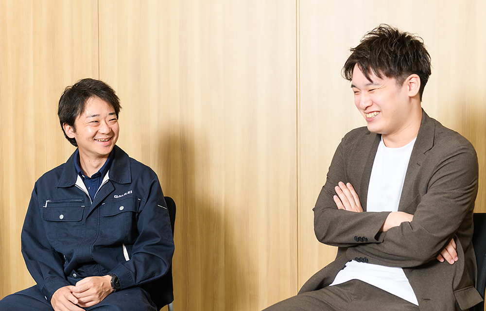 もともと研究室で黙々と開発に取り組む……みたいなイメージを持っていましたが、いい意味で、思った以上に社外との関わりが多い仕事でした。仕入れ先のサプライヤーさんから新しい材料の知見を得られることもあれば、自分が手がけた製品の施工現場で製品のよい点や改善すべき点などを確認して、次につなげることも。彦根工場にいるだけではなかなかリアルな情報が入ってこないため、今では自分で動いて、欲しい情報を集めることがとても大切だと私は考えています。二人が言っているのを聞いて、あらためて開発も現場がすごく大事だよな……と思いました。現場は自分が「誰のために、何のために開発するのか」を気づかせてくれます。これまでの自分を振り返ってみても、開発の原点に立ち戻れる、貴重な機会になっていました。