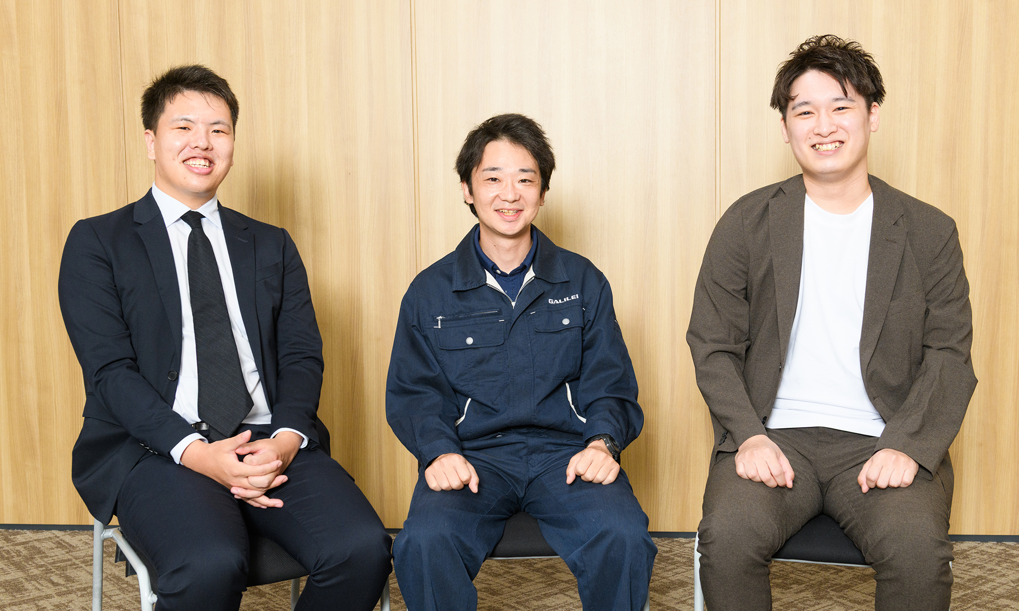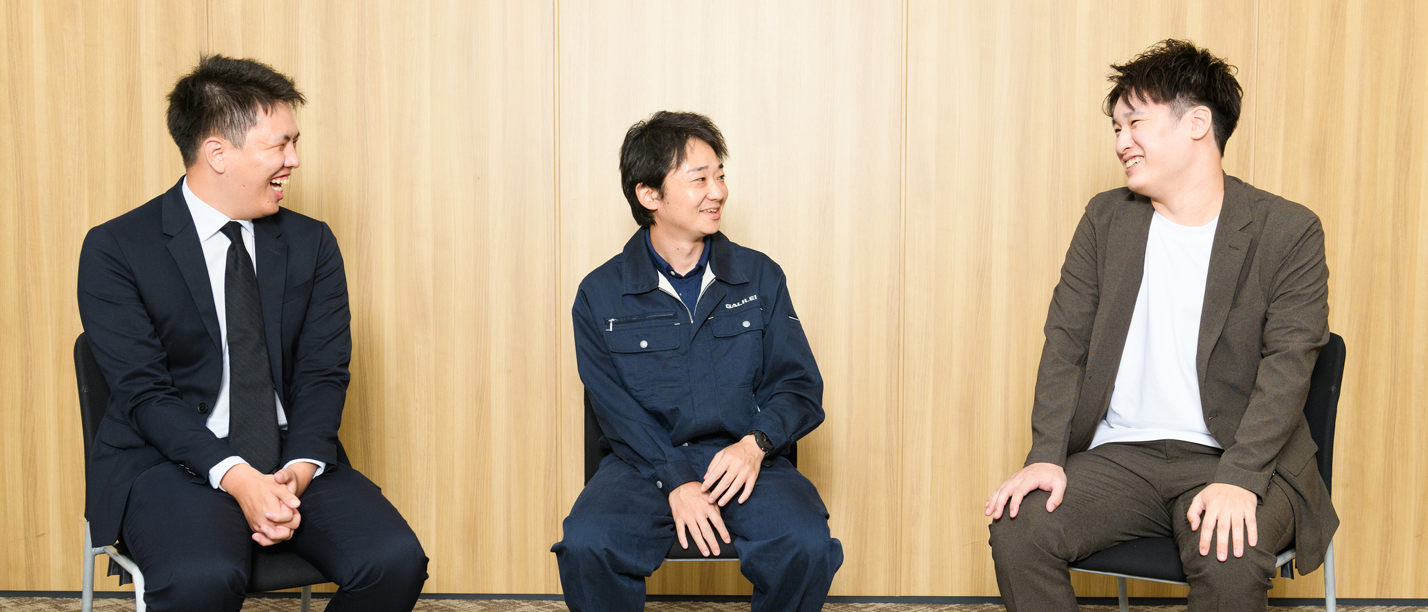 各部署の最前線で活躍する営業・設計・開発の社員3名が一堂に会してフリートーク。入社理由や仕事内容、自らの成長を感じたエピソードも交えながら、時にはホットに、時にはクールに、ガリレイパネルクリエイトのリアルを語り合いました。