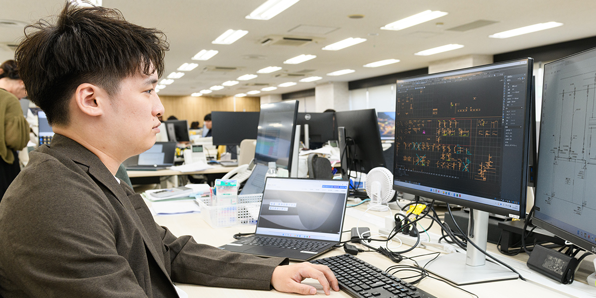 営業から依頼を受けた図面の作成や更新が主な業務ですが、作成の中で気づいたことや新たな提案を、営業を通じてお客様へ行うこともあります。
